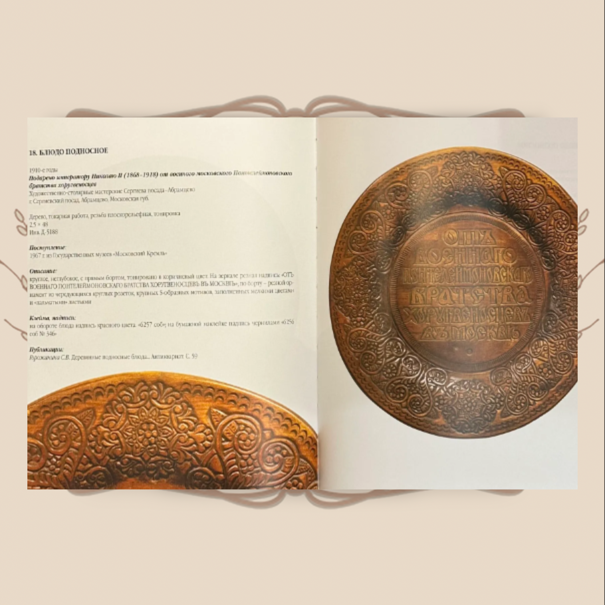 Настоящее издание посвящено редкой коллекции произведений "русского стиля" XIX - начала ХХ веков, состоящей из деревянных, богато украшенных резным декором и дарственными надписями подносных блюд и солонок, хранящихся в Сергиево-Посадском государственном историко-художественном музее-заповеднике. Памятники созданы в ведущих художественных мастерских страны. Их основная часть связана с важными событиями и памятными датами в жизни страны и императорского дома Романовых. Издание адресовано как специалистам, так и широкому кругу читателей, ценителей отечественного искусства.
