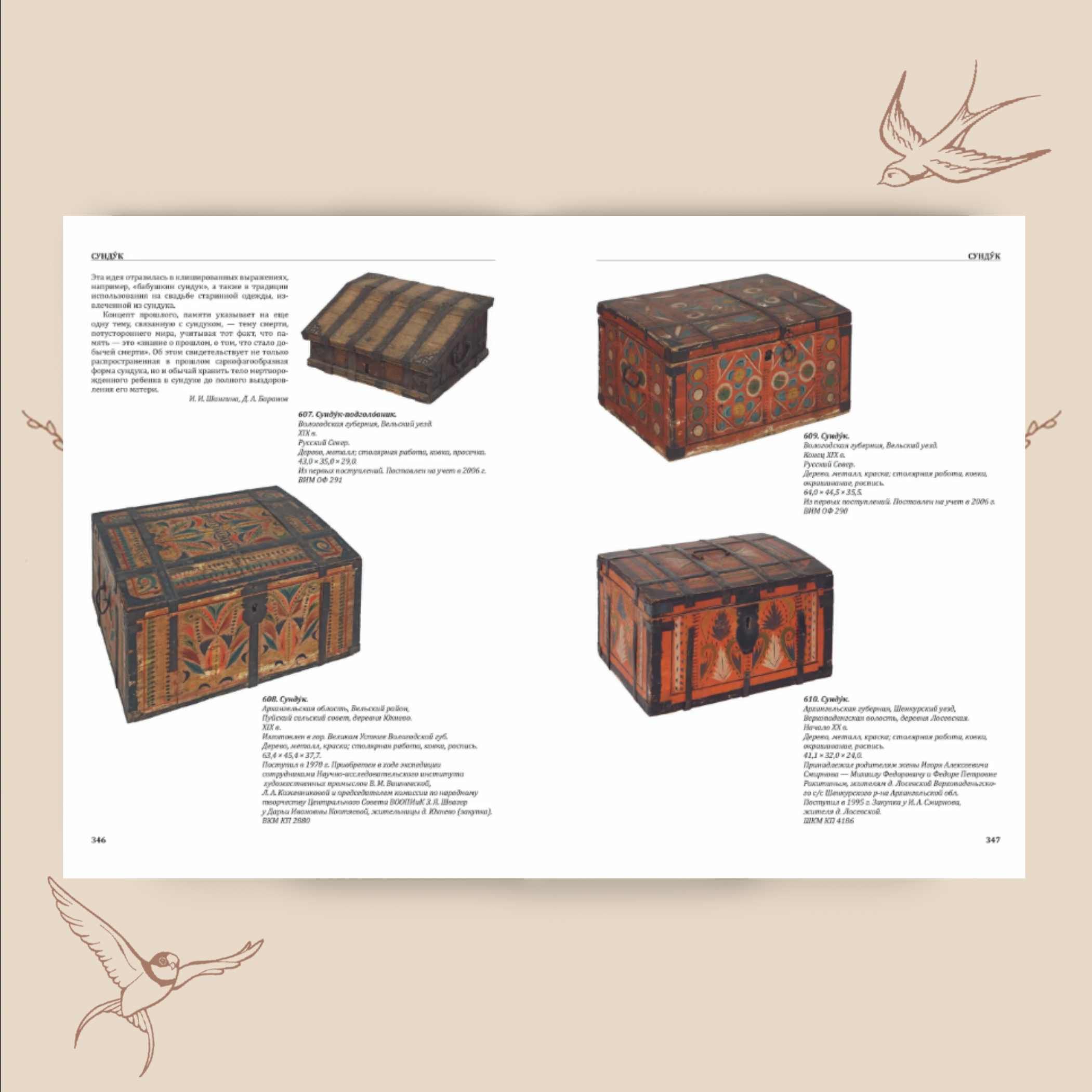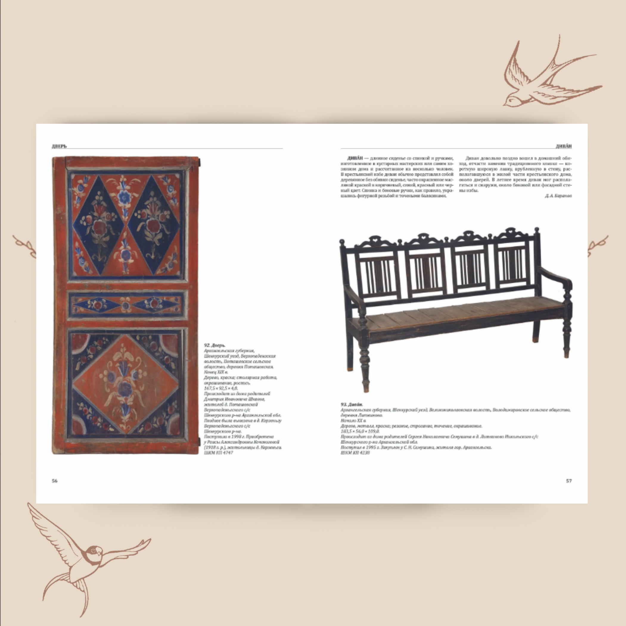 Это издание — результат большого совместного проекта нескольких музеев, который удалось осуществить благодаря поддержке Президентского гранта и Министерства культуры Архангельской области. Авторы объединили фонды Российского этнографического музея, Вельского, Устьянского, Шенкурского и Верховажского музеев, чтобы впервые показать уникальные предметы XVII–XX веков. Здесь — и предметы крестьянского быта, и инструменты ремесленников, и детали убранства дома, о которых сейчас мало кто помнит.