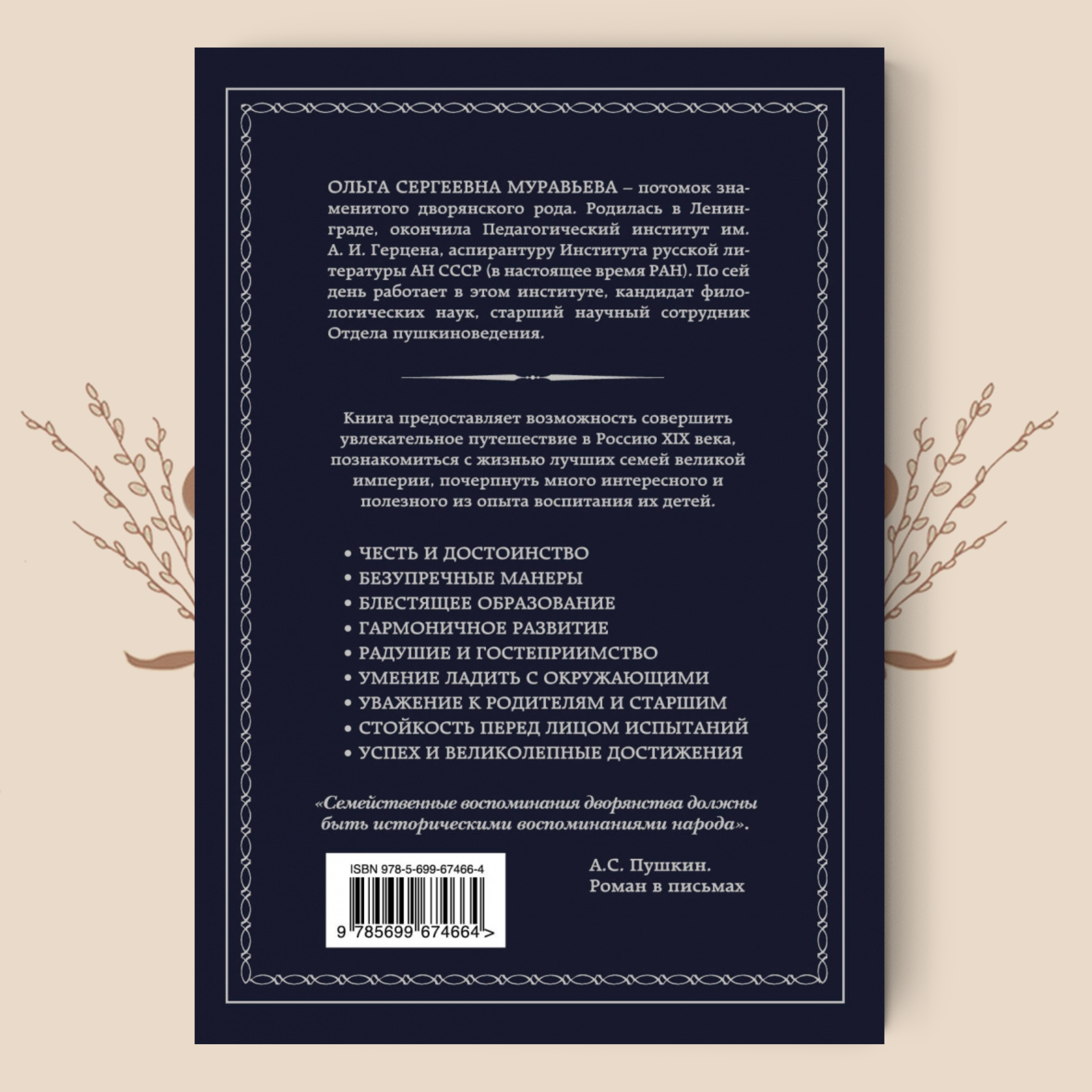 Книга потомка знаменитого дворянского рода, ученого-филолога Ольги Сергеевны Муравьевой, предоставляет возможность совершить увлекательное путешествие в Россию ХIХ века, познакомиться с жизнью лучших дворянских семей, почерпнуть много интересного и полезного из их опыта воспитания детей.