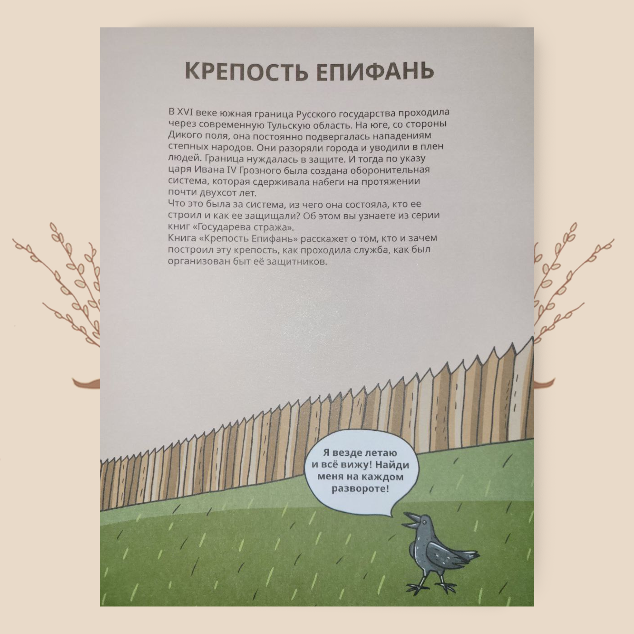 Книга «Крепость Епифань» из серии «Государева стража» посвящена одному из важнейших звеньев этой системы. Читатели вместе с детьми узнают, кем, когда и для чего была построена эта крепость, как несли службу её защитники и как был организован их повседневный быт на переднем крае обороны страны.