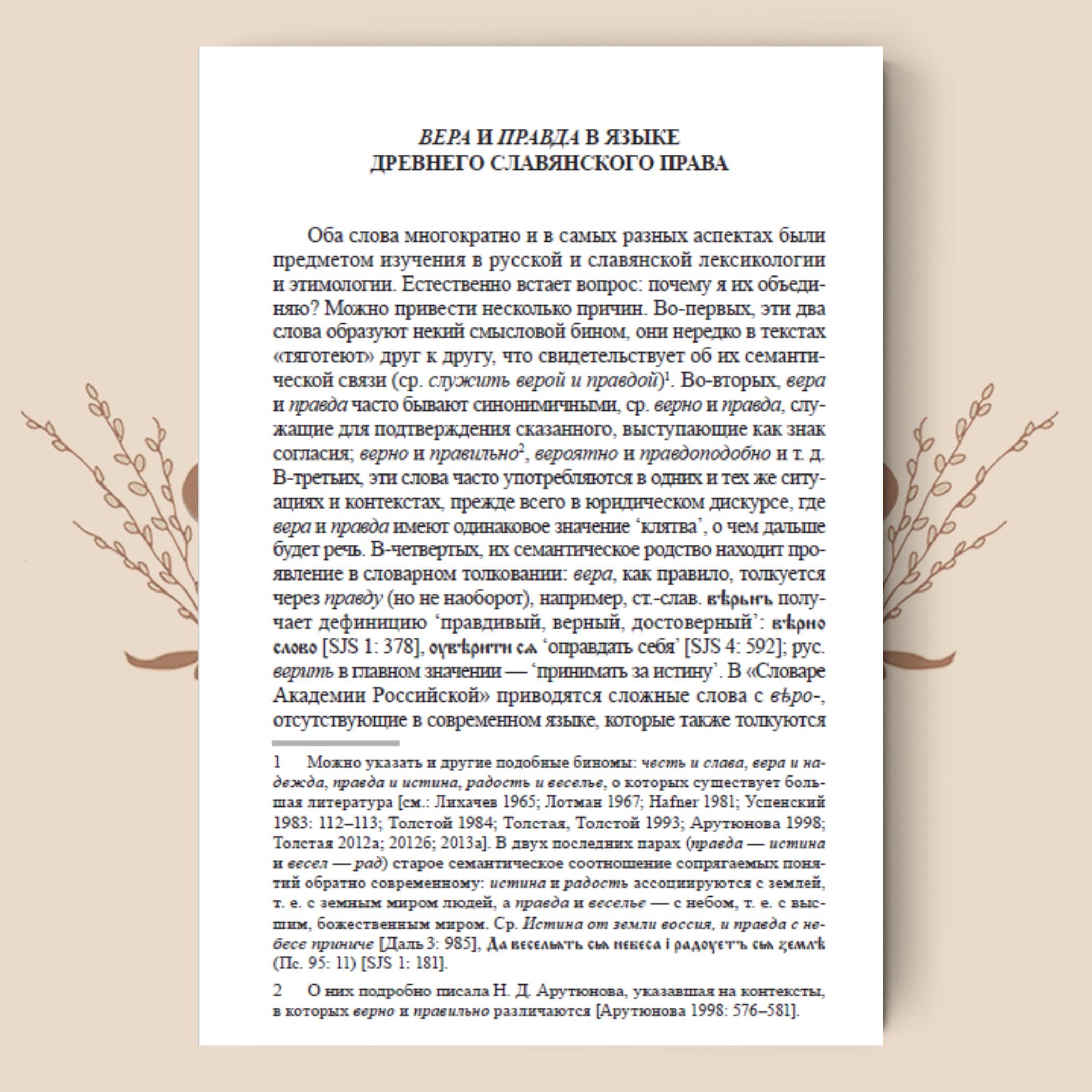 - Первая посвящена реконструкции значений праславянских слов, таких как mirъ (мир) и světъ (свет), věra (вера) и pravьda (правда).