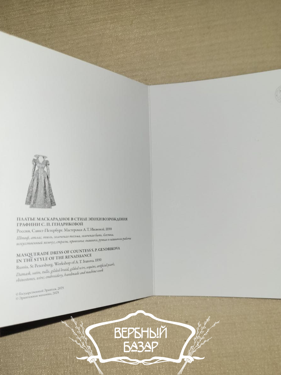 Этот набор открыток — ваш личный доступ к самым знаковым и роскошным экспонатам придворного костюма из сокровищницы Государственного Эрмитажа.