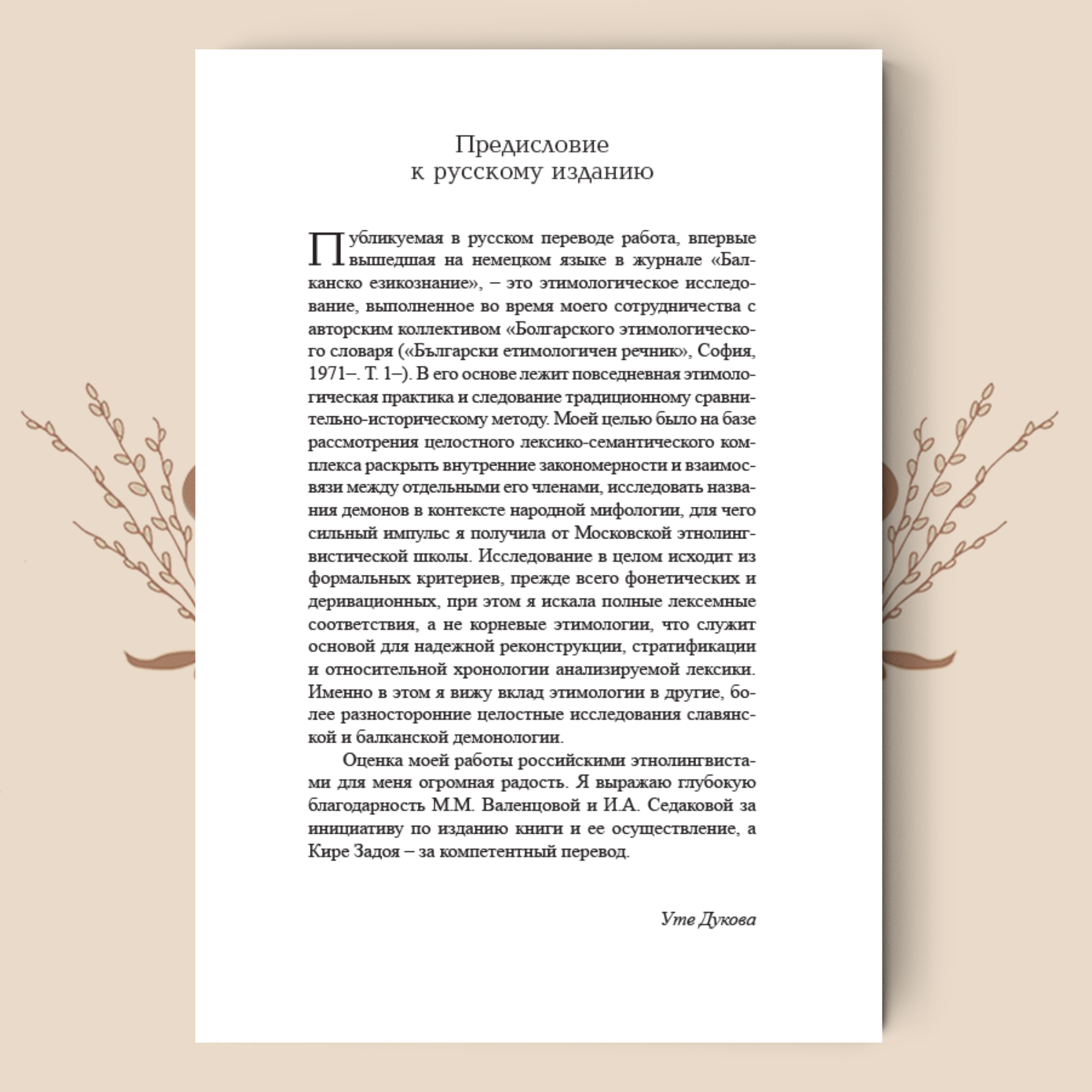 Книга немецкой исследовательницы содержит этимологический и этнолингвистический анализ лексики, обозначающей демонические персонажи в болгарском языке, с привлечением данных других славянских, балканских и индоевропейских языков.