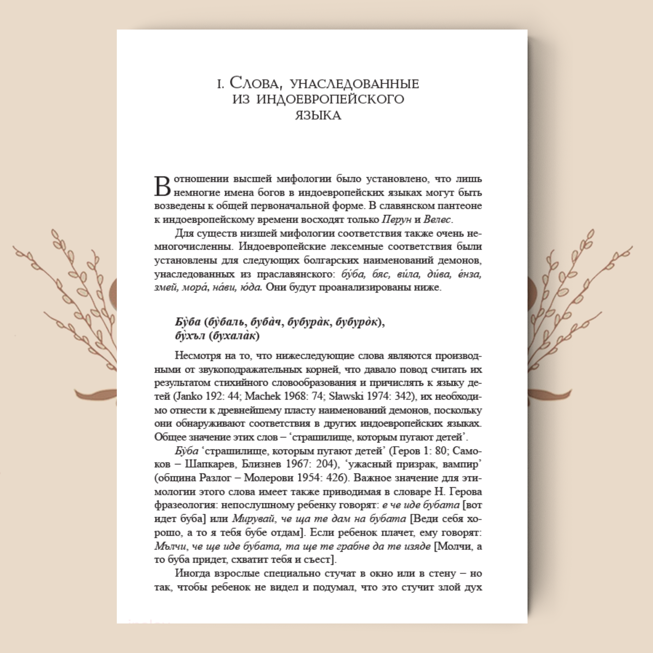 Лексика представлена в виде словарных статей и объединена в три большие группы в зависимости от происхождения терминов: унаследованные из индоевропейского фонда, славянские (южнославянские, болгарские) и заимствования (в основном из греческого и турецкого языков). Монография является богатейшим сводом сведений по демонологии и мифологии болгар и других балканских народов, а также фундированным этимологическим исследованием.