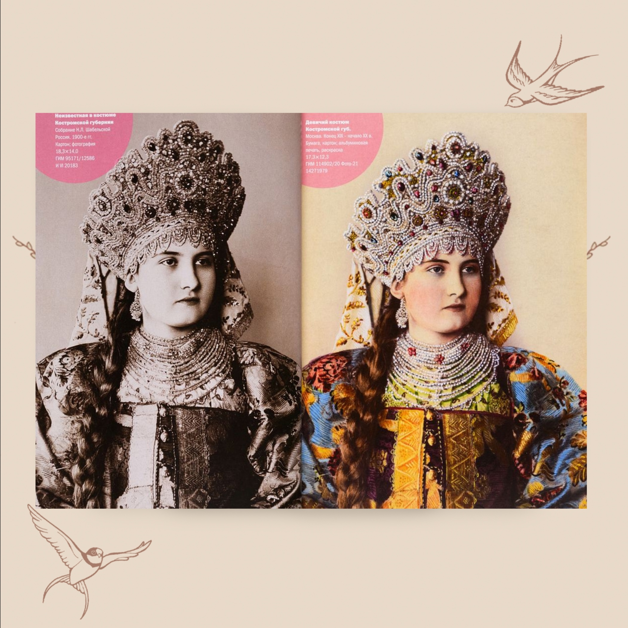В этом издании собраны как раскрашенные, так и черно-белые фотографии, которые позволяют увидеть раритеты легендарного «Собрания русской старины» Н.Л. Шабельской и её дочерей.