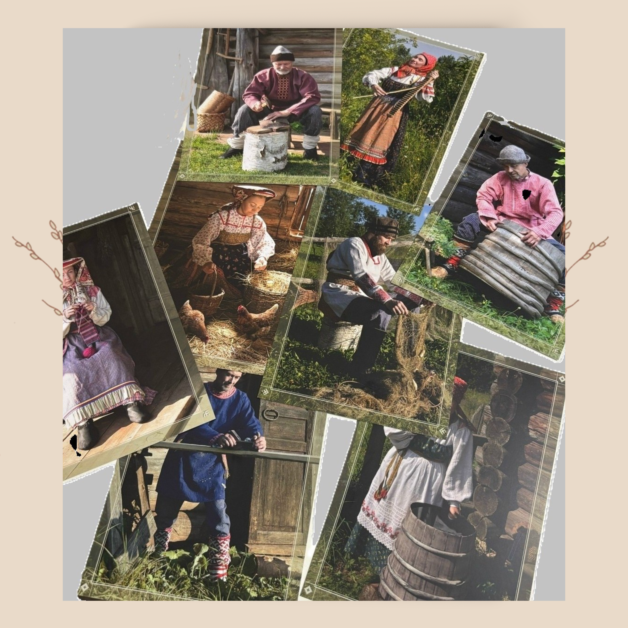 Открытки передают точность деталей и цветовое богатство традиционных нарядов. Их можно использовать как учебный материал, коллекционный экземпляр или оригинальный подарок для ценителей народной культуры.