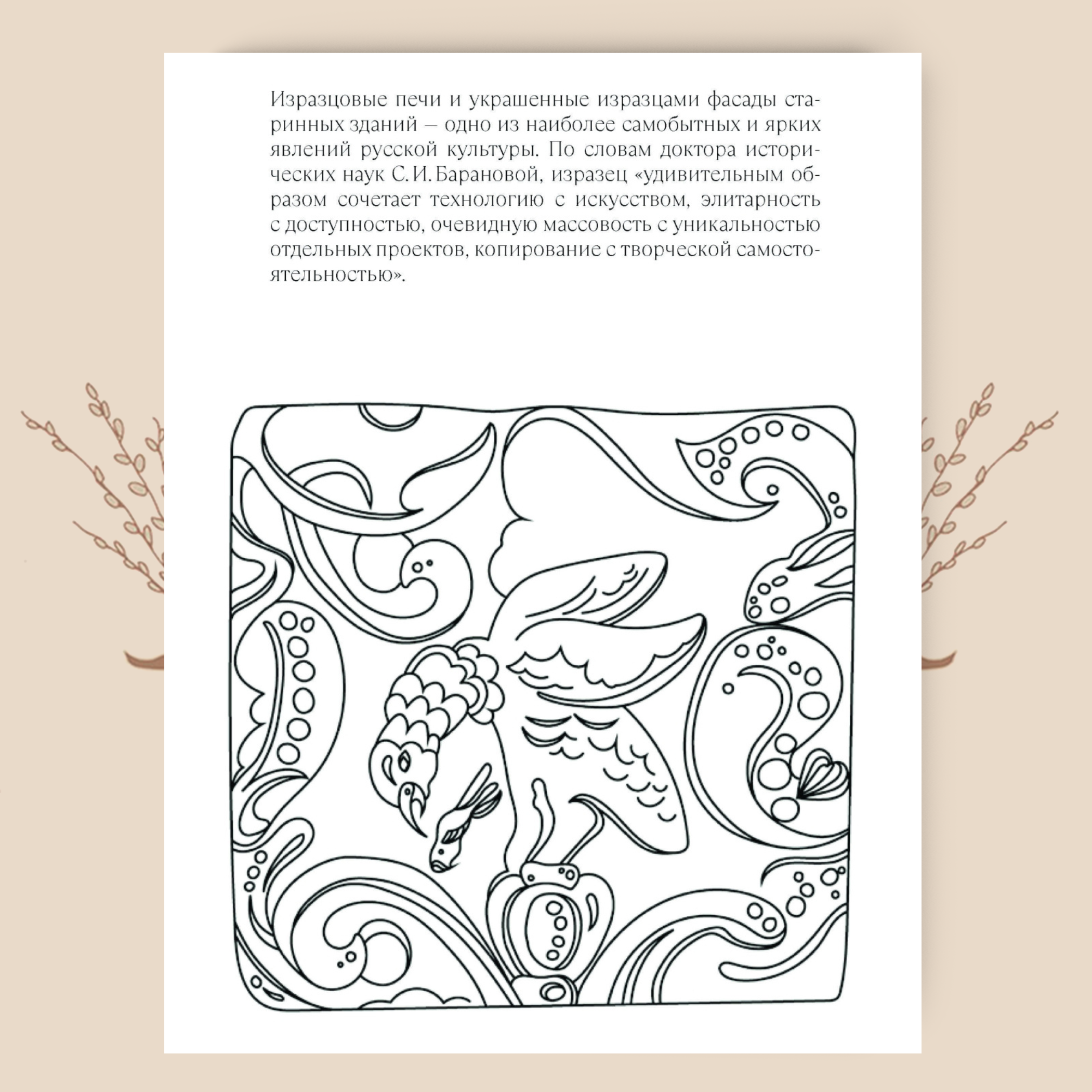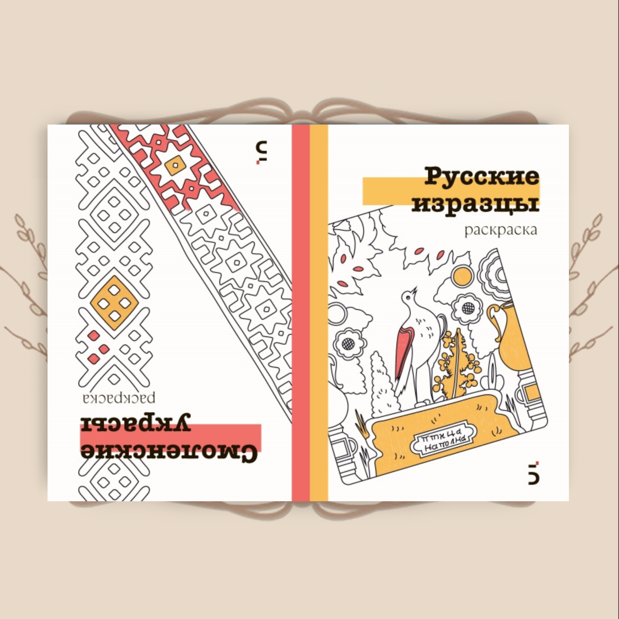 Погрузитесь в мир русского традиционного искусства с раскраской-перевертышем, созданной по материалам книг серии «Традиции мастерства»: «Русские изразцы в собрании Российского этнографического музея» и «Смоленские украсы. Орнаменты народной вышивки».