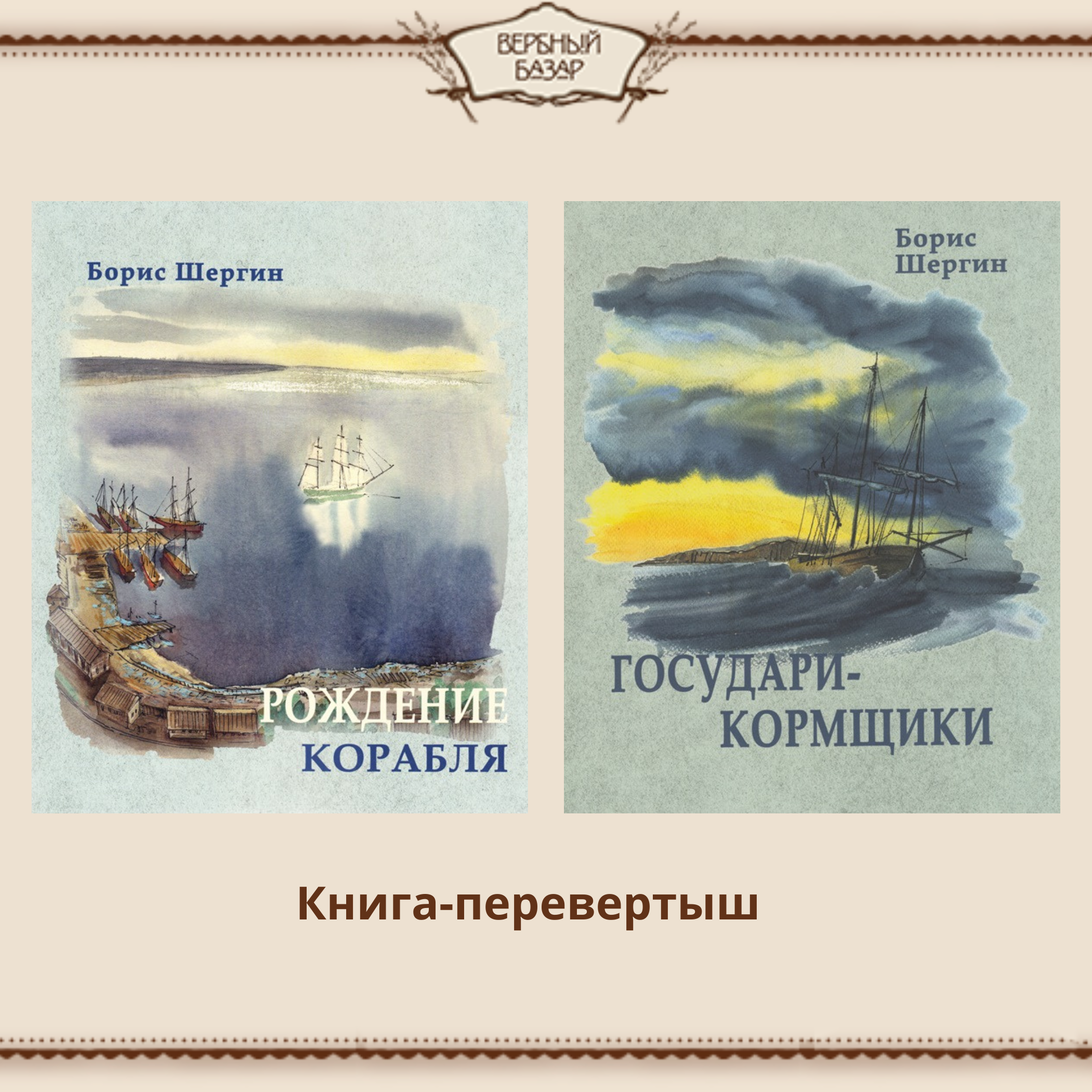 Это книга-перевертыш: с одной стороны — рассказ «Рождение корабля», с другой — морские рассказы «Государи-кормщики».
