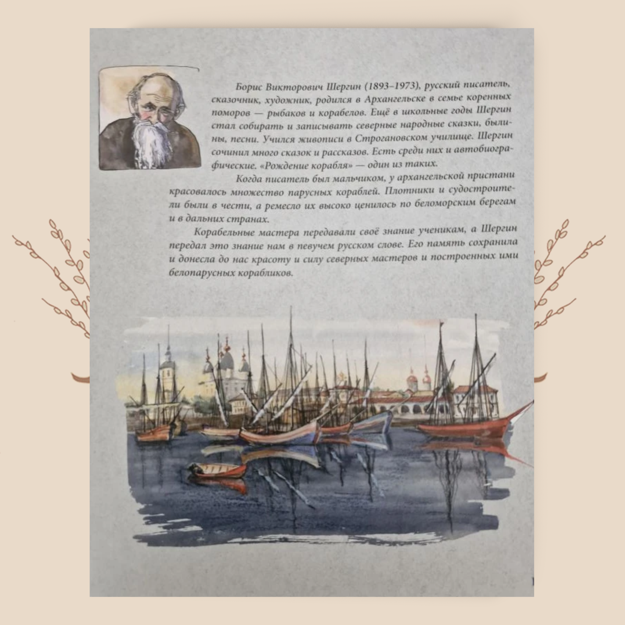 «РОЖДЕНИЕ КОРАБЛЯ — один из таких. Когда писатель был мальчиком, у архангельской пристани красовалось множество парусных кораблей. Плотники и судостроители были в чести, а ремесло их высоко ценилось по беломорским берегам и в дальних странах.