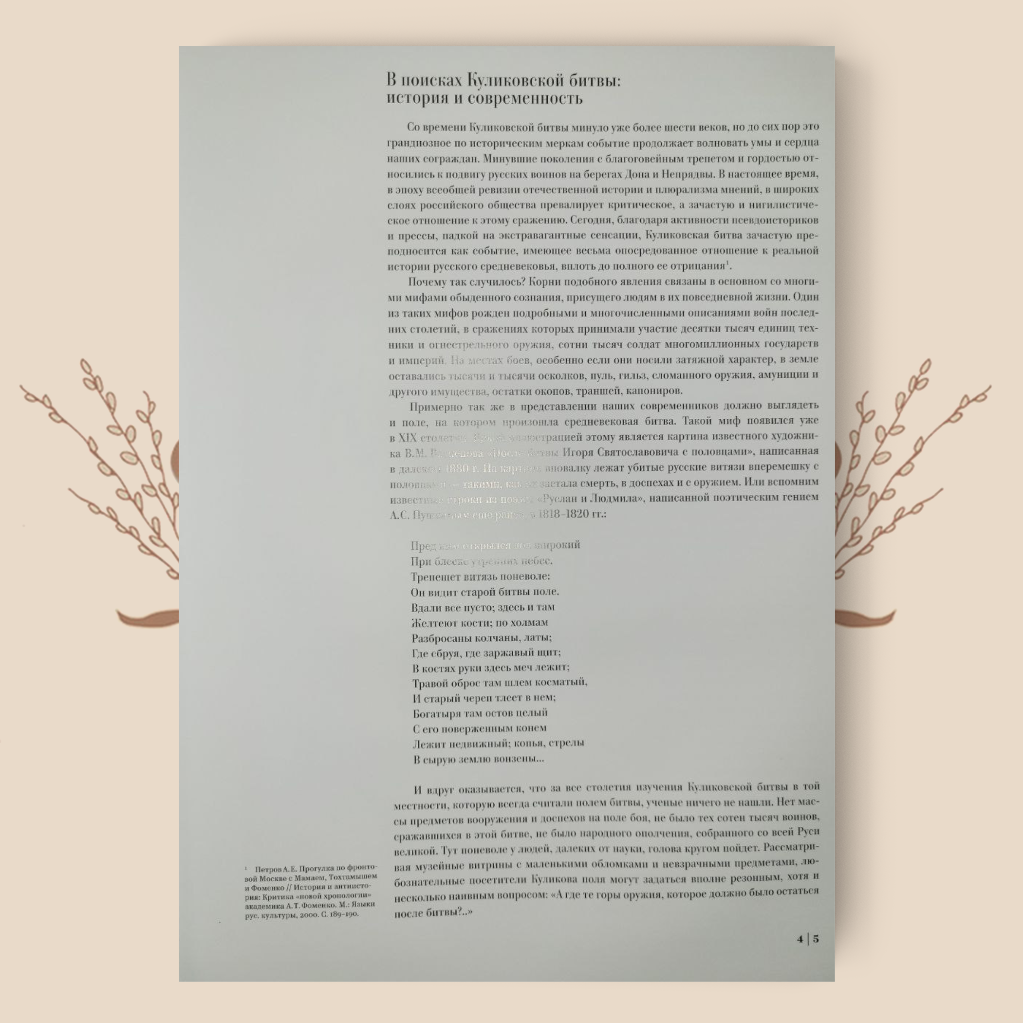 Книга, выпущенная к 650-летию знаменитого сражения, даёт уникальную возможность прикоснуться к подлинным материальным свидетельствам тех событий. Это не просто каталог, а настоящая археологическая летопись битвы, составленная на основе находок с самого поля Куликовской битвы в Тульской области. Издание подготовили ведущие специалисты музея-заповедника «Куликово поле».